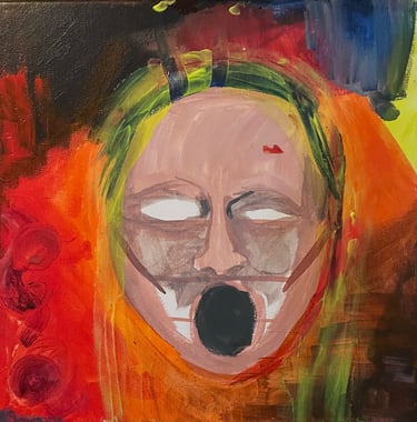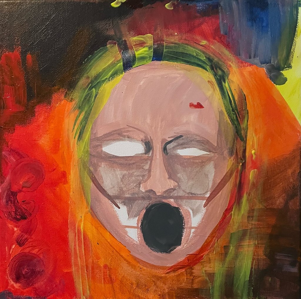 Collaboration with my sister (Meg Vermilion) and their spouse (Alex Calbick), we added on layers of meaning and color. My contribution demonstrates the desire to communicate the fears of our youngest selves, and how that fear may turn and instead collide with our intentions to share love.