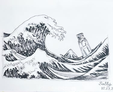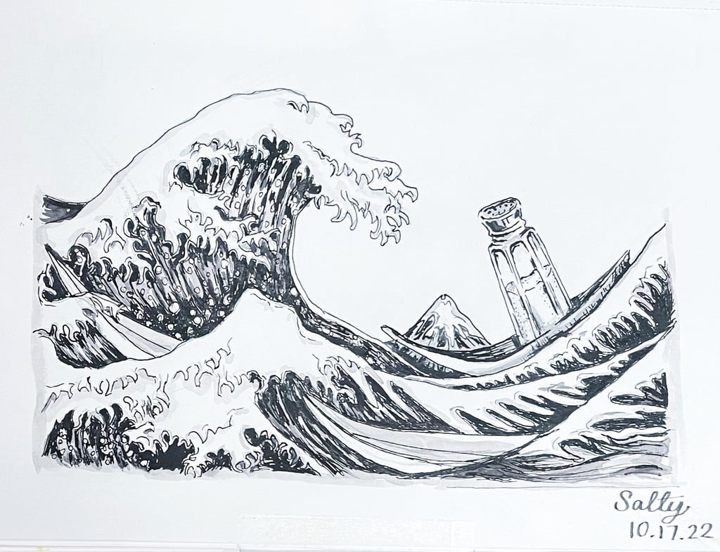 This punny piece brings me joy, reminding me of my late grandfather who had a mural of the wave painted in his home.