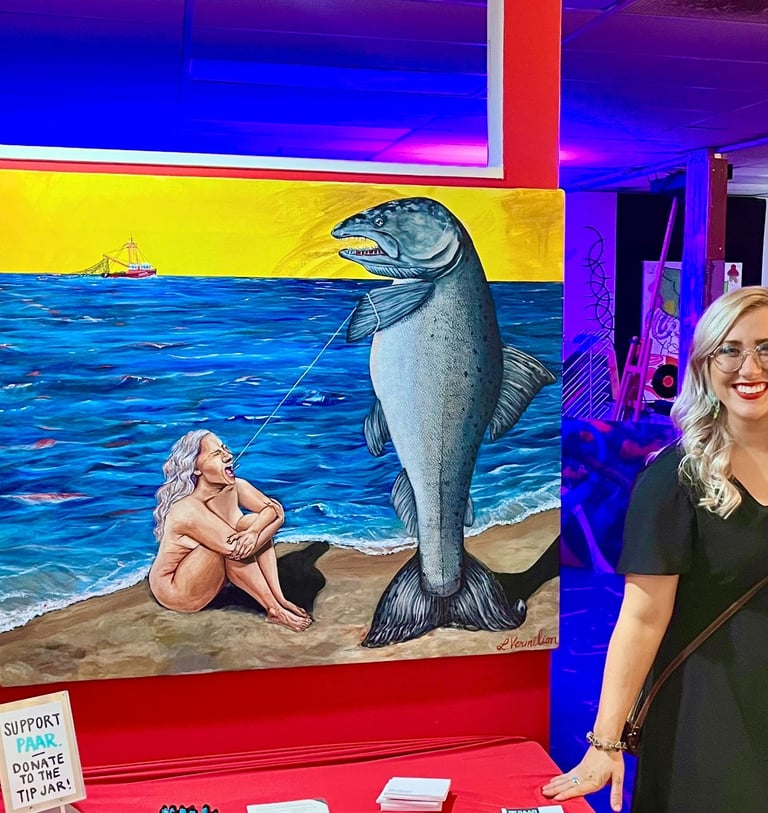 A Pittsburgh-based, Seattle-born artist, inspired by anthropocentric human/ nature dichotomies, ecofeminist philosophy, surrealism and color. I explore themes of trauma, dissociation, and recovery through the lens of my own experiences. I am a queer ecofeminist and these cross-sectional identities inform my work. My art is exploration, beauty, catharsis and love. My artistic aim is for others to connect with, and project their interpretations onto these thematic surreal landscapes.